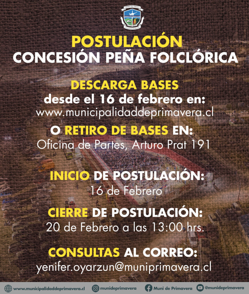 Invitamos a toda la comunidad a ser parte de la concesión de venta de la Peña Folclórica de la XXVI Versión de la Fiesta Campesina del Ovejero 2026